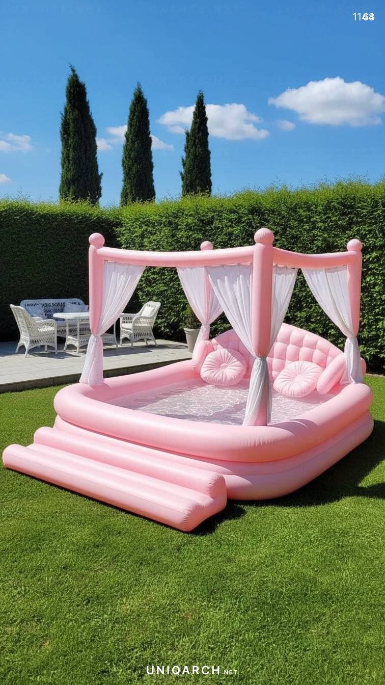 The inflatable-bed-pool often includes headboards, side tables, and other bedroom-inspired elements, all adapted for aquatic use. Some designs allow you to recline partially submerged, while others keep you dry on an elevated platform with water surrounding you on all sides. It’s the ultimate in lazy summer day luxury, perfect for reading, napping, or simply stargazing while staying cool.
