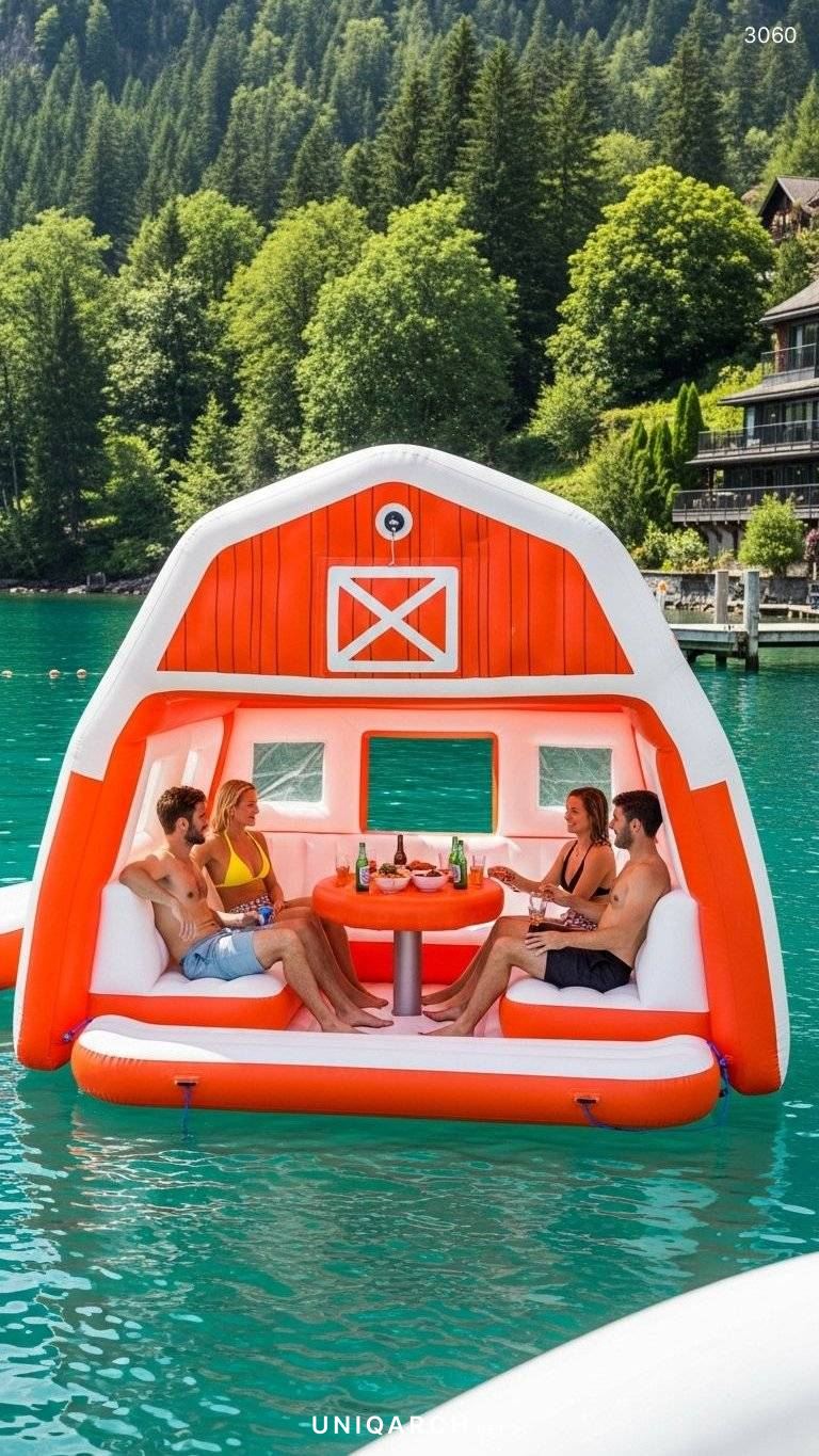 For the homebodies who love outdoor living, inflatable barn lake floats and inflatable vw bus lake floats bring nostalgic charm to the water. The VW bus designs, with their retro colors and peace-sign vibes, are particularly popular among those who appreciate vintage aesthetics. Meanwhile, barn-themed floats often feature rustic details and ample space for groups to gather.